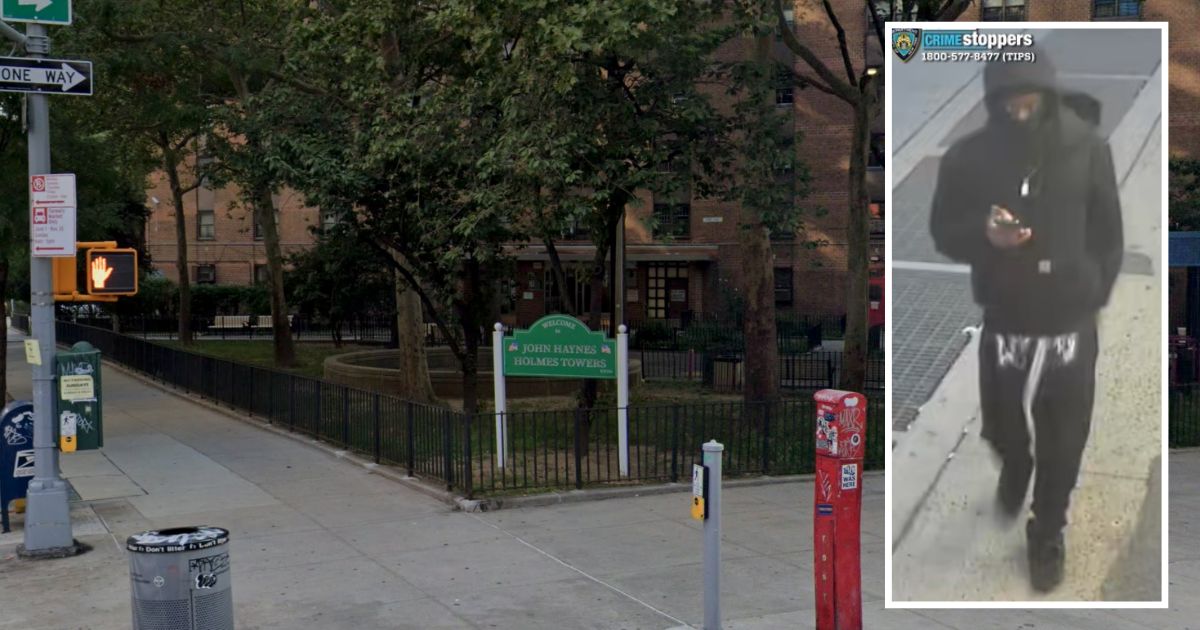He is described as a male with a dark complexion who was last seen wearing all black — including a black jacket, black pants, a ski mask and black sneakers.