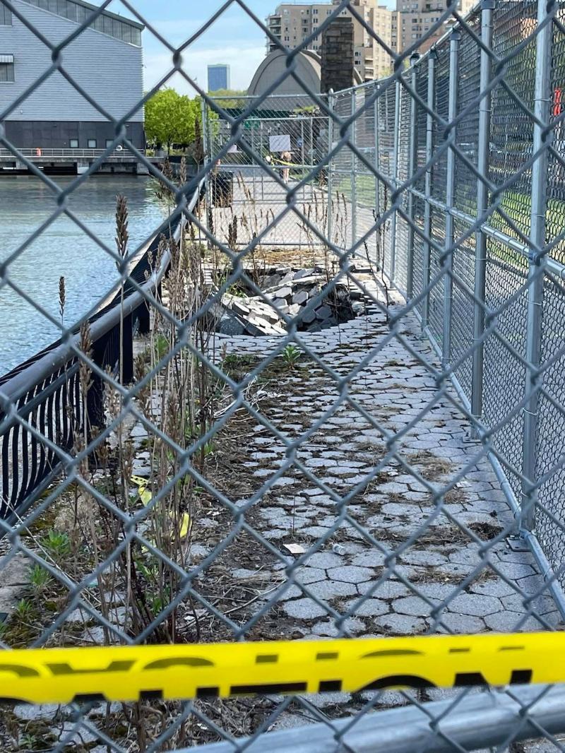 The Upper East Side stretch of the esplanade has long drawn scrutiny from community groups over its aging seawall, cracked pavement, and repeated partial closures. No timeline has been announced for reopening the block between 93rd and 94th Streets.