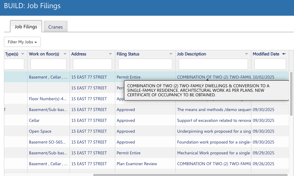 The owners of 15-17 East 77th Street (between Fifth and Madison avenues), Brittany Morgan, 37, and her husband, hedge fund manager Zachary Kurz, 39, purchased the double-wide townhouse for $30 million in May 2023. Morgan, a member of the family that owns Morgan Properties, one of the nation’s largest privately held apartment landlords, and Kurz plan to combine the two houses, add an elevator, and build an indoor pool in the cellar. According to Streeteasy, the combined home will be over 33 feet wide and will span about 14,000 square feet.Their next-door neighbors, a doctor and his wife in their 70s who bought 13 East 77th Street in 2003 for $5.22 million, are fighting back. They argue the excavation — expected to take nearly a year of drilling through Manhattan schist bedrock — would create a nuisance and pose serious health risks to the husband, who suffers from asthma and lung nodules. “My client has both asthma and lung nodules,” their attorney, David Peraino, wrote in an email filed in the court. “He is extremely concerned about the issue of dust caused by your client’s excavation and its effects on his health … Your client will be excavating through rock for nearly a full calendar year.”