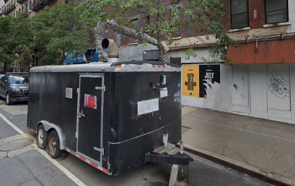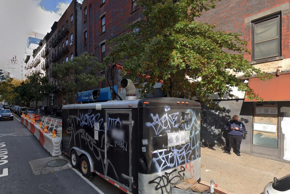 The truck-sized metal unit occupies the curb in a space that’s technically supposed to be a no-standing zone — meaning it’s blocking a loading area residents say the block actually needs. Another speaker described it as a “portable heater” parked in front of a mostly vacant building that “hasn’t been touched in years.”